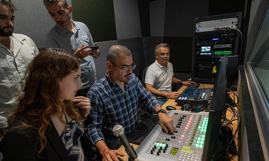 Después de la pandemia, y con la llegada de Alexander Zatyrka Pacheco, SJ, como rector del ITESO, el proyecto se reactivó y desde la OCI se continuó con el proceso de solicitud de una concesión ante el Instituto Federal de Telecomunicaciones (IFT). “Solicitar una concesión es complicado. De entrada, no había frecuencias disponibles”, explica Villa. Es decir, el espectro radioeléctrico ya estaba saturado por otras emisiones. No obstante, gracias al respaldo técnico de Luis Miguel Martínez, coordinador de actividades de ingeniería en Radio Ibero 90.9 FM, se logró demostrar que desde el campus era técnicamente viable operar una frecuencia sin interferencias.
